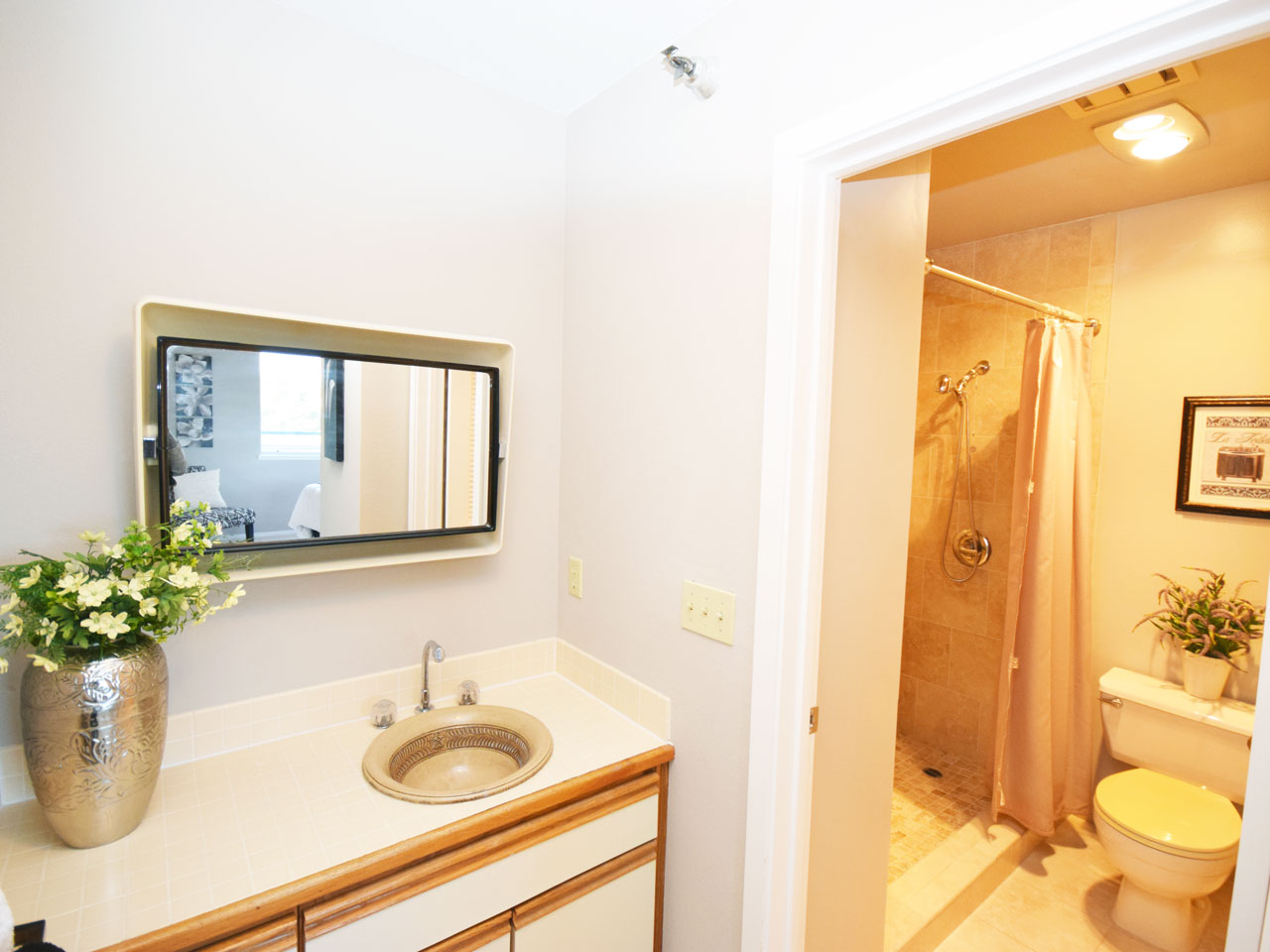 Rarely available top-floor unit w/bay views + vaulted ceilings. Open floor plan perfect for entertaining. Two light-filled master suites w/updated master BA. Enjoy the view from your private balcony or in front of the fireplace! Two deeded parking spaces plus plenty of storage. Proximity to AC Transit, freeway + Richmond ferry to SF (coming soon!).