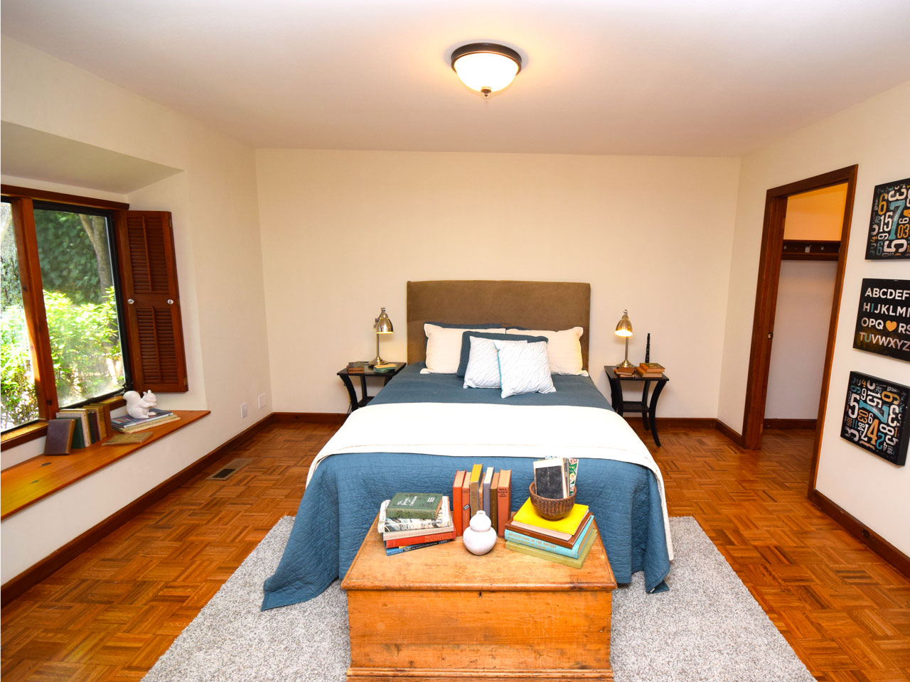 Wonderfully reimagined 4 bedroom, 3.5 bathroom French Country home on a quiet cul-de-sac, updated from top to bottom! Family-friendly open floor plan with easy access to the level yard. The ultra-modern kitchen includes a Bertazzoni gas range and Bosch refrigerator/dishwasher. First-floor master suite with walk-in closet, whirlpool tub and dual sinks. Separate bedroom suite with private entrance perfect for in-laws or au pair. Bonus rooms include possible home office, kids play area and breakfast nook. Handcrafted details throughout include ornate wood carvings from the original owner. Proximity to Kensington Hilltop Elementary School, Transbay H Bus to San Francisco and Kensington shops.