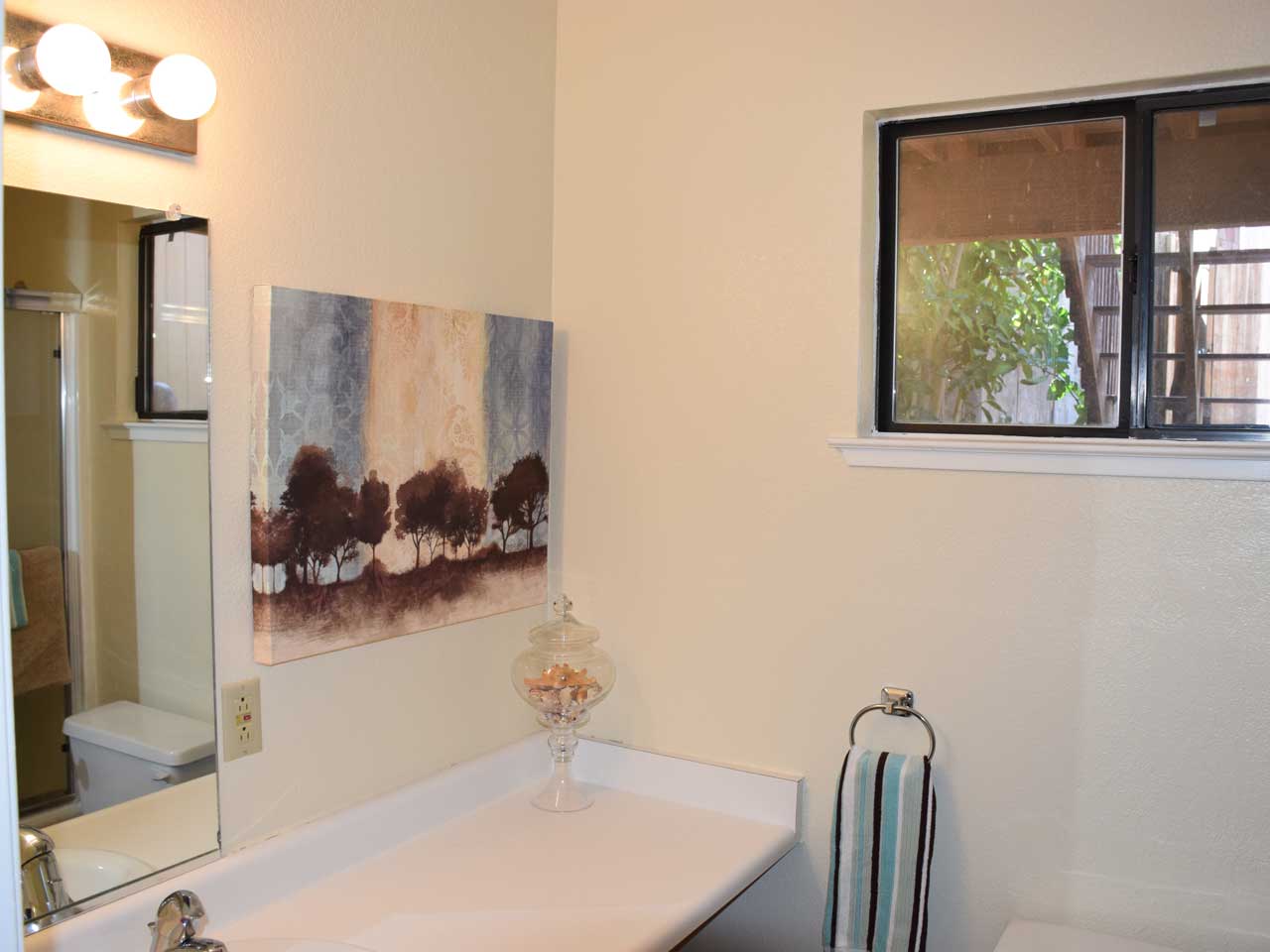 Amazingly private courtyard entry welcomes you home to this gated community close to shopping/freeway. Main-level open floor plan perfect for family time or entertaining. Updated kitchen with new counters. Laundry/half BA on main level for ultimate convenience. Two bedrooms each with their own full bathroom. Private yard, decks and 2-car garage.