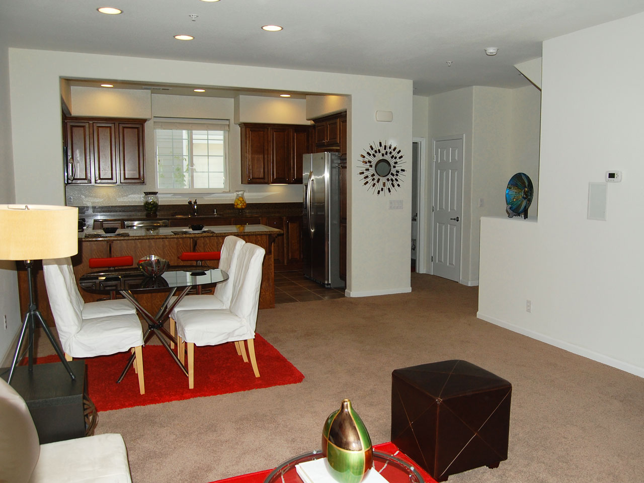 Peaceful courtyard entry into this move-in ready 3 bedroom, 2.5 bathroom home in sought after Marina Bay. Main level open floor plan with family room (wired for home theater!), dining area and balcony for cookouts. Gourmet kitchen w/granite counters & stainless steel appliances. Master bedroom includes ensuite bathroom, walk-in closet and built-in surround sound. Second upstairs bedroom perfect for the family with its own bathroom and tub. Entry-level third bedroom ideally located for your home office or guests. Two-car garage and amazing storage throughout.