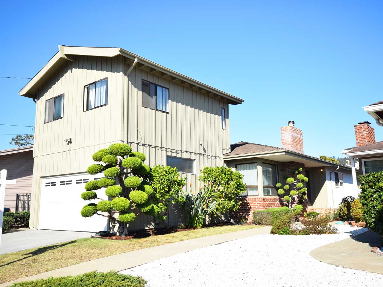 Attached two-car garage and storage galore. Botanical setting includes apple and lemon trees, roses and birds of paradise. Only 30 minutes from your door to Embarcadero Station!