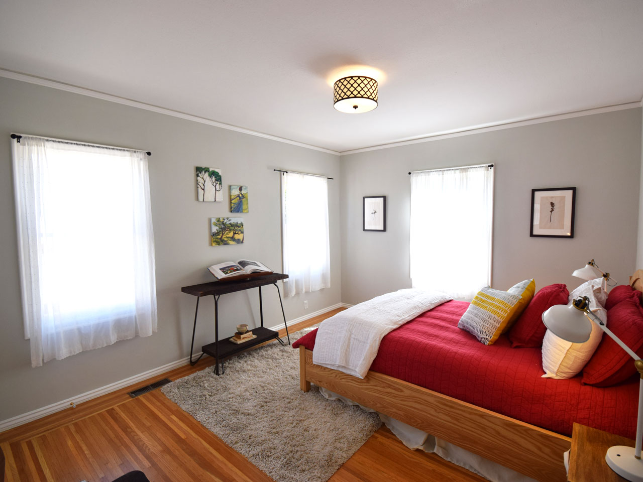 Bright and airy 2 bedroom, 1 bathroom MacGregor home in the heart of Albany, thoughtfully upgraded from foundation to roof! Renovated eat-in kitchen with easy access to formal dining room and backyard for entertaining. Original details include matchstick floors, cast iron tub, vaulted ceilings and bathroom floor tiles. Drought tolerant backyard planted with apricot, plum and fuyu persimmon trees. Large garage for parking, storage or workshop. Bonus room below for play area, laundry and more storage.